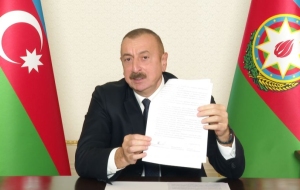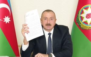 Это заявление имеет историческое значение. Должен сказать, что данное заявление было подписано в форме видеоконференции, на первоначальном этапе главы 3 стран должны были подписать заявление посредством видеоконференции. Однако в последний момент премьер-министр Армении отказался сделать это. Это в определенной степени можно понять, так как данное заявление фактически означает военную капитуляцию Армении. Поэтому Президент России и я подписали данное заявление в формате видеоконференции, и заявление составлено на русском языке. Здесь есть моя подпись, после подписания данный документ передан послу России, главы государств и правительств России и Армении подпишут этот документ.