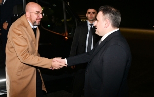 Как сообщает Trend, в Международном аэропорту Гейдар Алиев Шарля Мишеля встречали министр оборонной промышленности Азербайджанской Республики Вугар Мустафаев и другие официальные лица.