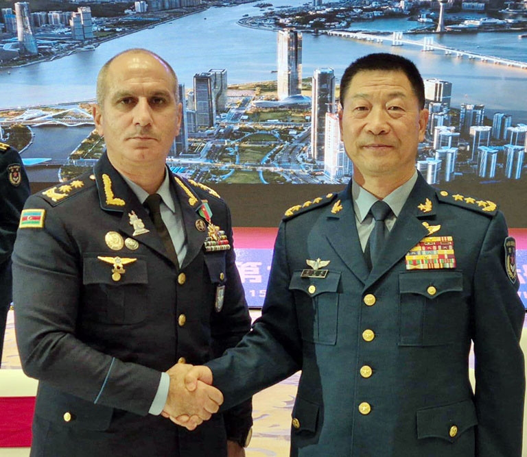 На встрече были обсуждены текущее состояние и перспективы развития военного и военно-технического сотрудничества между ВВС Азербайджана и Китая. Генерал-лейтенант Н.Исламзаде поблагодарил китайского коллегу за приглашение на выставку.