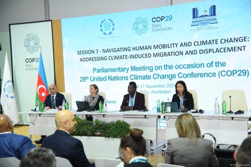 БАКУ/Trend/- В Баку стартовала сессия "Регулирование человеческой мобильности и изменения климата: решение проблем миграции и перемещений, вызванных климатическими изменениями" на полях Парламентской встречи в рамках COP29, организованная совместно Межпарламентским союзом (IPU) и Милли Меджлисом Азербайджанской Республики.