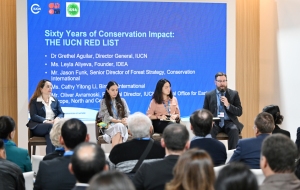 Выступая в рамках мероприятия, прошедшего при модераторстве регионального директора МСОП по Восточной Европе, Северной и Центральной Азии Оливера Аврамоски, генеральный директор МСОП Гретель Агилар, генеральный директор организации Conservation International по лесной стратегии Джейсон Фанк и главный менеджер организации Birdlife International Кэти Йитонг Ли поделились с участниками дискуссии мнением о важности сохранения живых существ, занесенных в Красный список МСОП, а также защиты глобального биоразнообразия посредством совместных усилий и деятельности, ориентированной на результат.