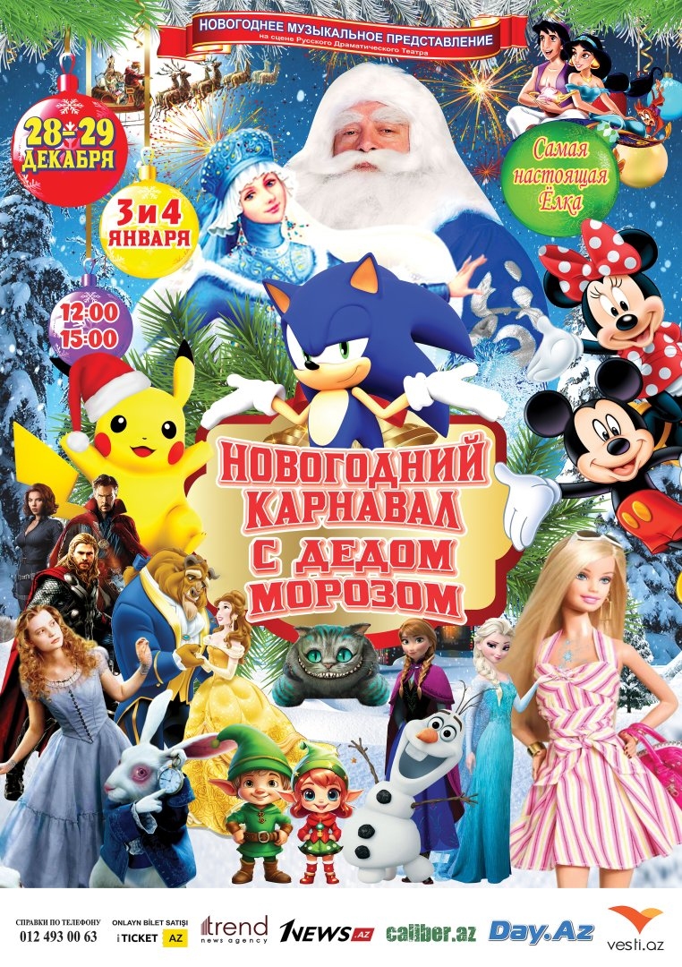 БАКУ /Trend Life/ - 28 и 29 декабря, а также 3 и 4 января на сцене Азербайджанского государственного академического русского драматического театра будет представлено новое Новогоднее музыкальное представление "Новогодний карнавал с Дедом Морозом" и самая настоящая Новогодняя елка, сообщили Trend Life в пресс-службе театра.