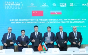 Представители министерств экономики, цифрового развития и транспорта, финансов, а также компаний BYD, SARDA Group и Electrify Azerbaijan подписали соглашение по проекту локализации производства электрических автобусов в нашей стране. Согласно договору, в рамках проекта планируется наладить производство электрических автобусов в Азербайджане и локализацию запасных частей, а к 2030 году поэтапно довести уровень локализации до 40 процентов.