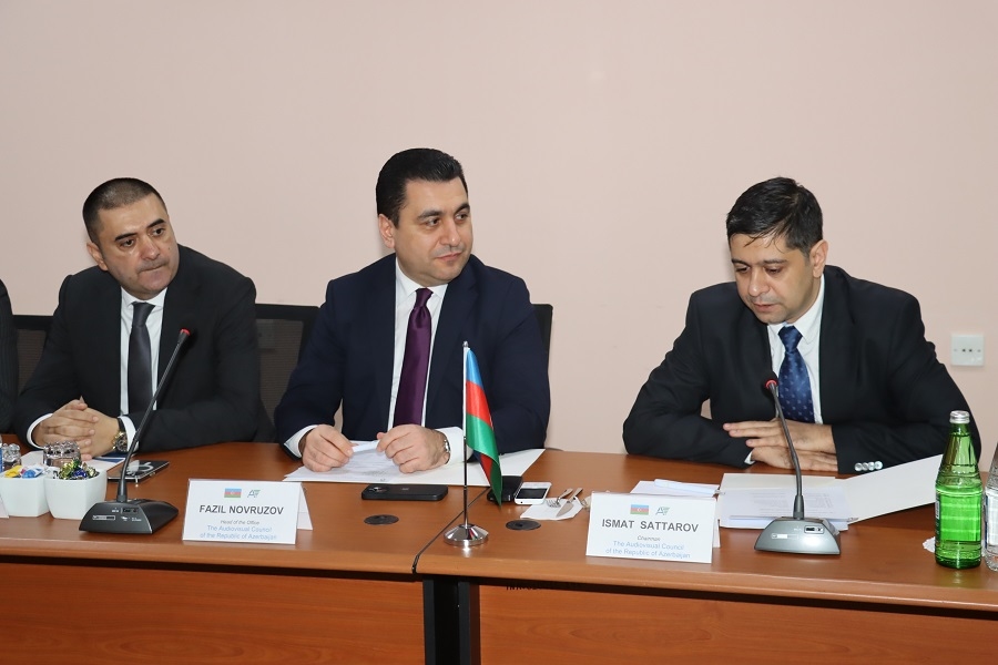Во время встречи заведующий сектором коммуникаций Аудиовизуального совета Азербайджана Талех Гулиев представил подробную презентацию об аудиовизуальной сфере страны. Он напомнил, что Азербайджан стал первой страной на постсоветском пространстве, отменившей цензуру, и что в стране действует множество независимых медиаорганизаций.