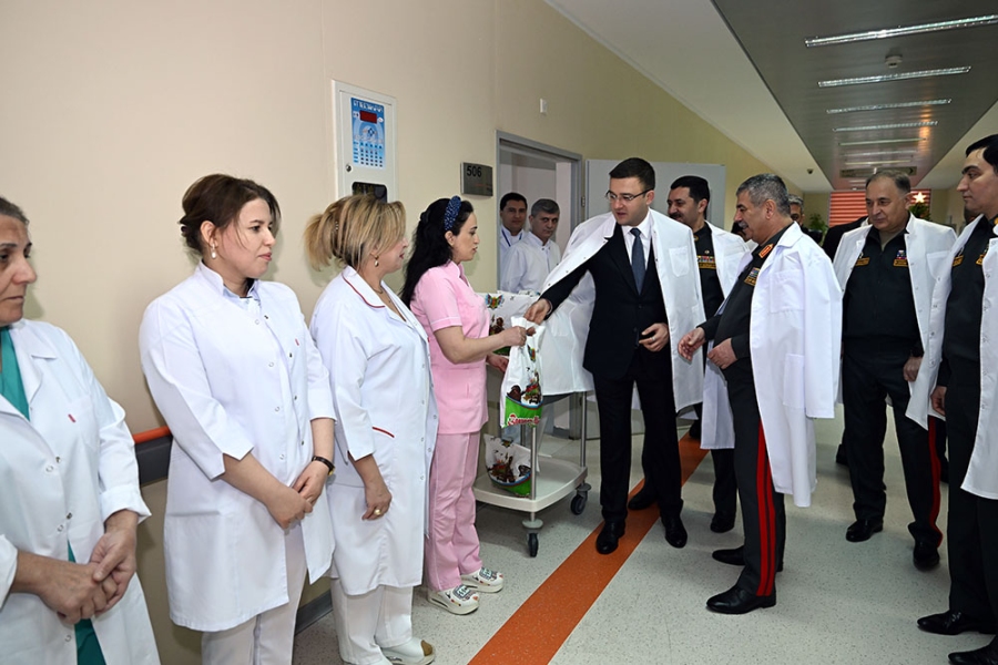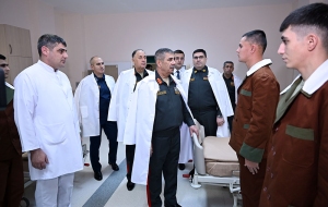 "Министр обороны генерал-полковник Закир Гасанов встретился с медицинским персоналом госпиталя и военнослужащими, проходящими здесь лечение, и передал им поздравления Президента Азербайджанской Республики, Верховного Главнокомандующего Вооруженными силами Ильхама Алиева по случаю Дня солидарности азербайджанцев мира и Нового года.