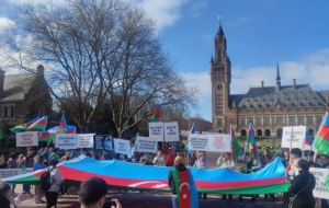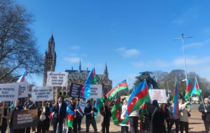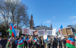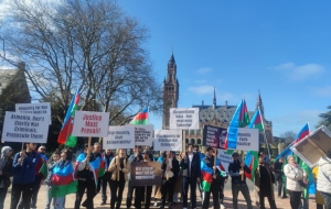 БАКУ /Trend/ - Проживающие в Европе азербайджанцы проводят перед Дворцом мира в Гааге акцию протеста с призывом к справедливости.