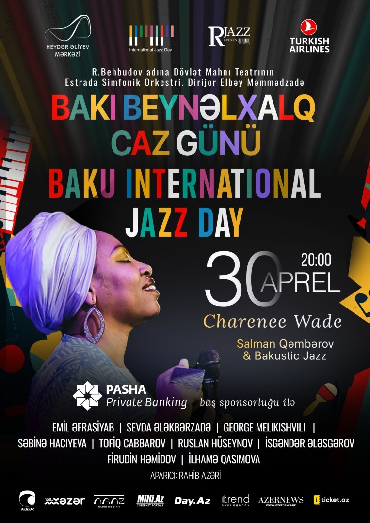 В концерте примут участие известная американская джазовая певица Charenee Wade, George Melikishvili (Грузия) и звезды джаза Азербайджана – народный артист Салман Гамбаров & Bakustic Jazz, заслуженные артисты Эмиль Афрасияб, Севда Алекперзаде, Тофиг Джаббаров, Руслан Гусейнов, а также Сабина Гаджиева, Искендер Алескеров, Фирудин Гамидов и Ильхама Гасымова, Ведущий вечера - заслуженный работник культуры Рахиб Азери