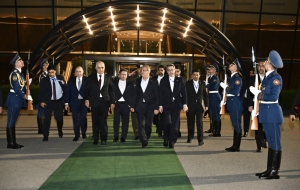 Как сообщает Trend, в Международном аэропорту Гейдар Алиев, где развевались государственные флаги двух стран, в честь высокого гостя был выстроен почетный караул.