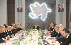 Как сообщает Trend, выступивший на заседании Самир Нуриев сказал, что под руководством Президента Ильхама Алиева, успешно продолжающего в соответствии с требованиями современной эпохи стратегию национального развития, основа которой была заложена великим лидером Гейдаром Алиевым, на освобожденных территориях продолжаются широкомасштабные восстановительные работы и реконструкция.