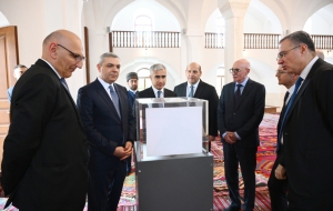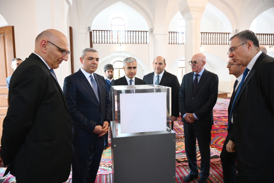 Затем состоялось посещение Агдамской Джума мечети. Мечеть, обломок камня от которой был передан общенациональному лидеру Гейдару Алиеву в период оккупации - 9 мая 2000 года, капитально отреставрирована Фондом Гейдара Алиева. Восстановлены разрушенный минарет мечети, внутренняя каменная кладка, входная дверь, фасад отреставрирован в соответствии с историческим обликом.