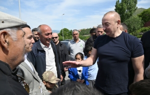 БАКУ /Trend/ - 27 мая Президент Азербайджанской Республики Ильхам Алиев встретился и побеседовал с жителями в городе Лачин, сообщает во вторник Trend.