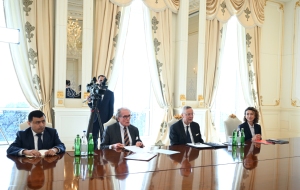 БАКУ /Trend/ - 30 мая Президент Азербайджанской Республики Ильхам Алиев принял председателя Восточного комитета германской экономики Михаэля Хармса, сообщает в пятницу Trend.
