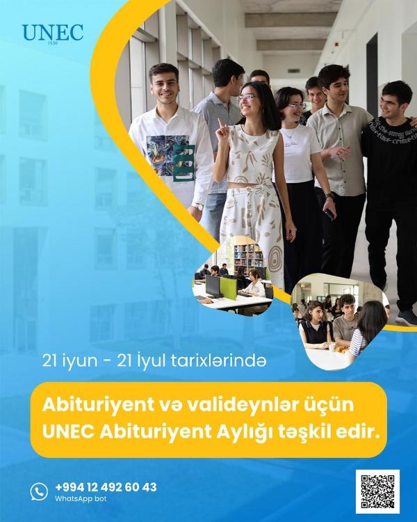 «Месяц абитуриента», предусмотренный для абитуриентов и родителей, а также иностранных граждан, желающих поступить в UNEC, продлится с 21 июня по 21 июля.