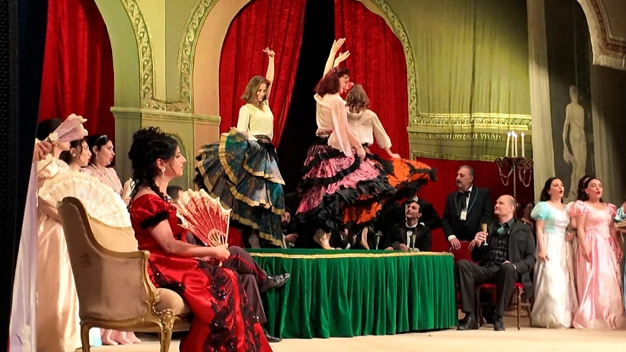 "Травиата" - одна из самых трогательных и проникновенных опер мировой классики, рассказывающая историю трагической любви куртизанки Виолетты Валери и молодого аристократа Альфреда Жермена. Виолетта вынуждена бороться с предрассудками общества и собственной болезнью, жертвуя личным счастьем ради благополучия любимого. Режиссёром спектакля выступил заслуженный деятель искусств Хафиз Гулиев, благодаря видению которого драма героев предстала на сцене в полную мощь. Блестящая игра актеров позволила зрителям максимально погрузиться в драматизм и эмоциональную глубину произведения.
