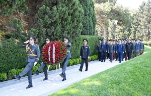 "Руководство министерства возложило венок к памятнику Общенациональному лидеру, почтив его светлую память. Также была посещена могила выдающегося офтальмолога, академика Зарифы ханым Алиевой, были возложены цветы и почтена ее светлая память.