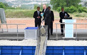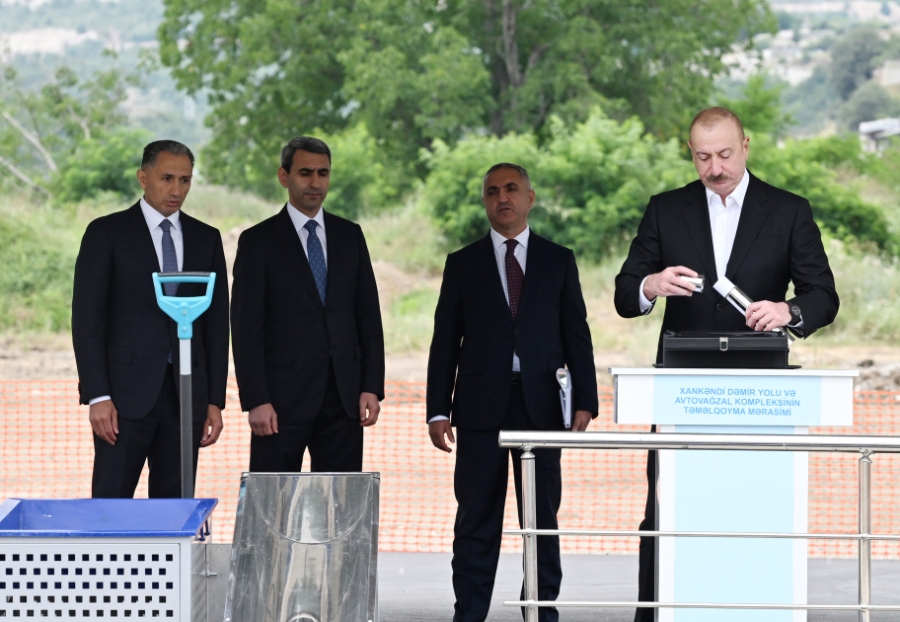 БАКУ /Trend/ - 3 июля Президент Азербайджанской Республики Ильхам Алиев заложил фундамент Ханкендинского железнодорожного и автовокзального комплекса, сообщает в четверг Trend.