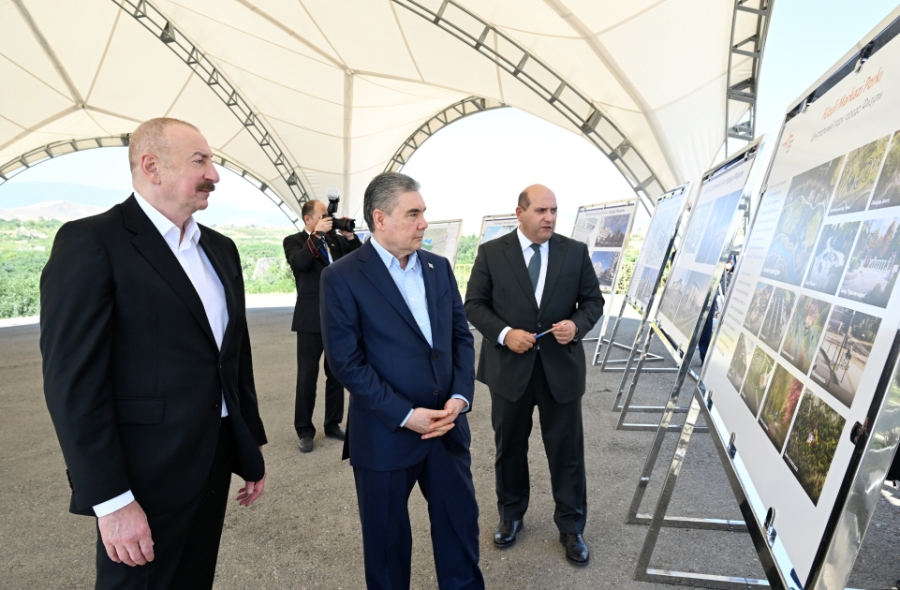 БАКУ /Trend/ - 17 июля Президент Азербайджанской Республики Ильхам Алиев и Председатель Халк Маслахаты Туркменистана Гурбангулы Бердымухамедов осмотрели разрушенные учатски города Физули, сообщает в четверг Trend.