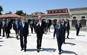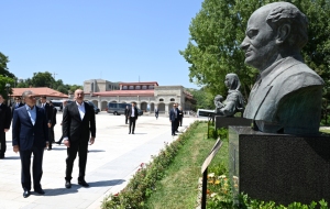 БАКУ /Trend/ - 17 июля Президент Азербайджанской Республики Ильхам Алиев и председатель Халк Маслахаты Туркменистана Гурбангулы Бердымухамедов осмотрели памятники выдающимся личностям Азербайджана - Натаван, Бюльбюлю и Узеиру Гаджибейли, расстрелянные армянами во время оккупации.