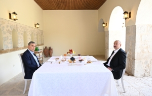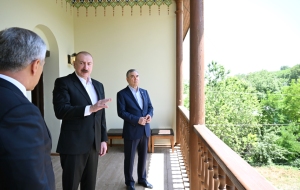 БАКУ /Trend/ - 17 июля Президент Азербайджанской Республики Ильхам Алиев и председатель Халк Маслахаты Туркменистана Гурбангулы Бердымухамедов посетили усадебный комплекс Мехмандаровых в Шуше.