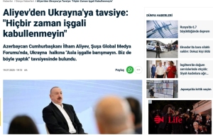 Украинские медиа, также уделяя внимание освобождению оккупированных территорий Азербайджана военным путем и войне России против Украины, написали, что Президент Ильхам Алиев посоветовал Украине никогда не соглашаться с оккупацией. «И мой ответ не будет отличаться от того, что я говорил тогда. И думаю это созвучно и чаяниям украинского народа: никогда не соглашаться на оккупацию! Вот это главный совет. Это то, что делали мы. Вернее то, как мы видели этот процесс», - отмечено в статьях со ссылкой на выступление Президента Ильхама Алиева.