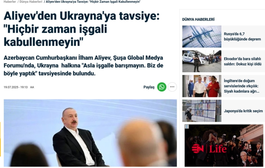 В обширном материале официального агентства Анадолу отмечается, что на мероприятии глава азербайджанского государства затронул перспективы нормализации отношений с Арменией, открытие регионального сообщения, инцидент с самолетом AZAL, войну в Украине и другие важные вопросы.