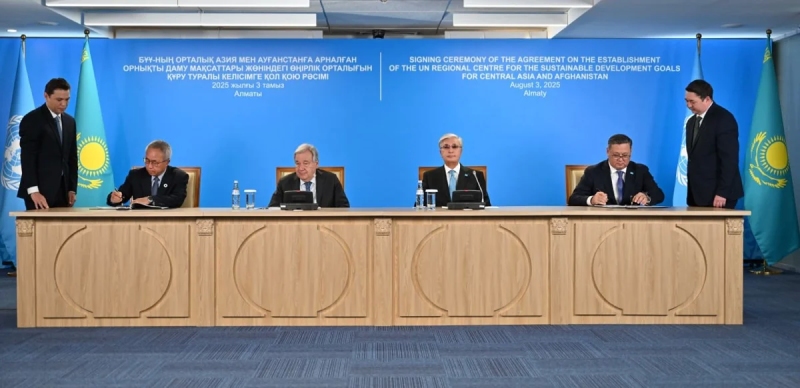 Президент Казахстана и генсек ООН приняли участие в церемонии подписания Соглашения между Правительством Казахстана и ООН о создании Регионального центра ООН по целям в области устойчивого развития для Центральной Азии и Афганистана.