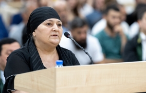 Отвечая на вопросы государственного обвинителя Фуада Мусаева, потерпевшая Адиля Алиева сообщила, что в 1992 году, во время Ходжалинского геноцида, она вместе с родственниками и земляками была взята в заложники и увезена в Ханкенди. По словам потерпевшей, в Ходжалинском геноциде её близкие были убиты вооруженными силами Армении.