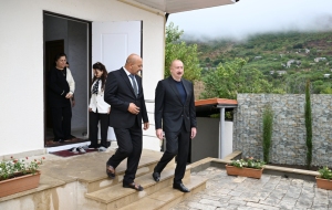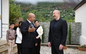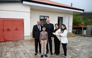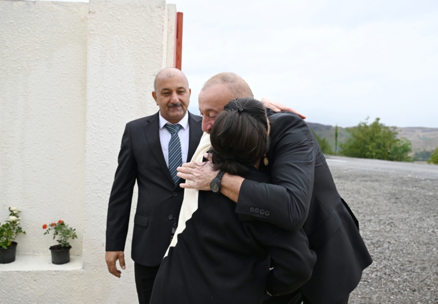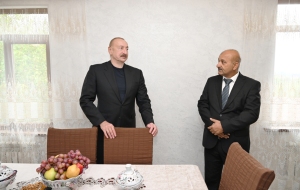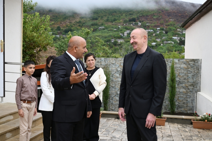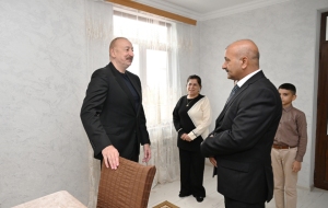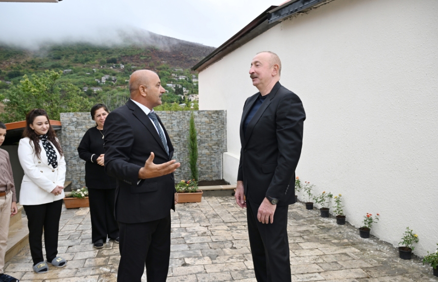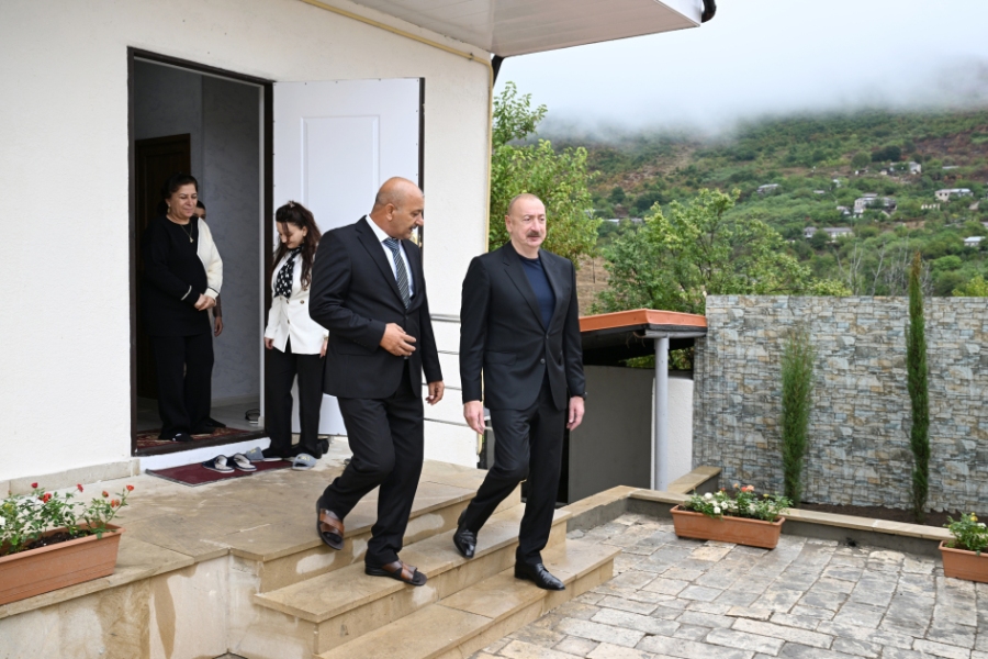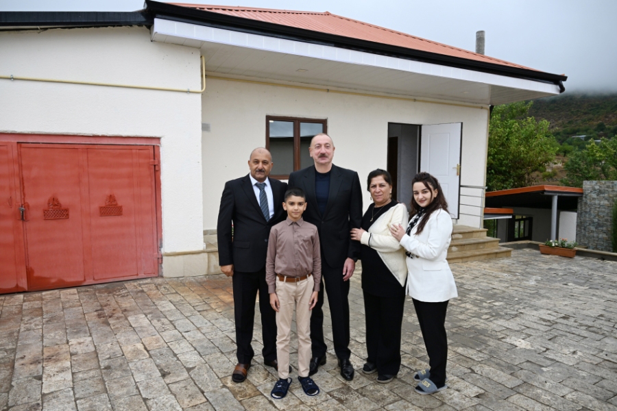 Президент Ильхам Алиев побывал в доме переселившегося в село Гамлета Гюльмамедова.