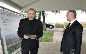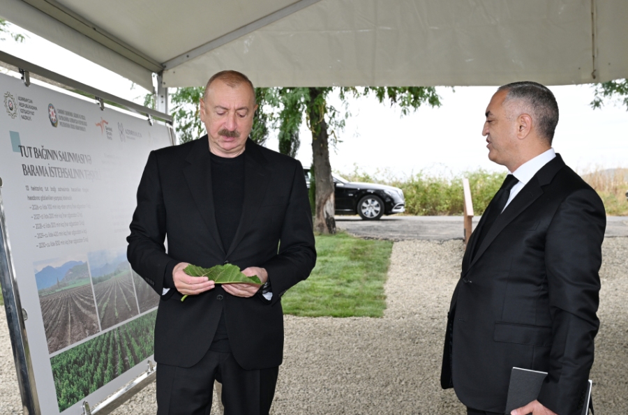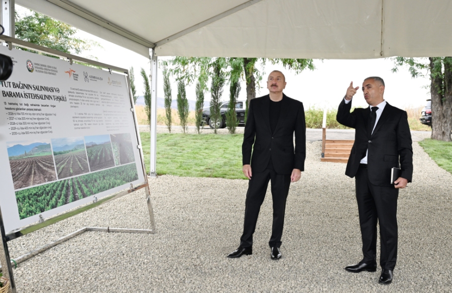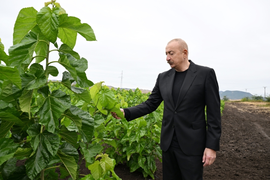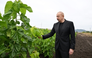 БАКУ/Trend/ - 15 сентября Президент Азербайджанской Республики Ильхам Алиев посетил тутовый сад, заложенный на площади 13 гектаров в селе Дашбулаг Ходжалинского района, сообщает в понедельник Trend.