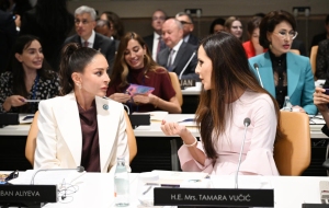 Как сообщает Trend, в мероприятии, организованном Республикой Узбекистан и Всемирной организацией здравоохранения, приняли участие Первая леди Азербайджана Мехрибан Алиева, ее дочери Лейла Алиева и Арзу Алиева.