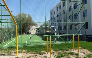 Школьный двор благоустроен, уложен асфальт, высажены декоративные кустарники и деревья, установлены современные системы освещения.