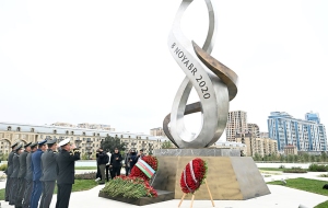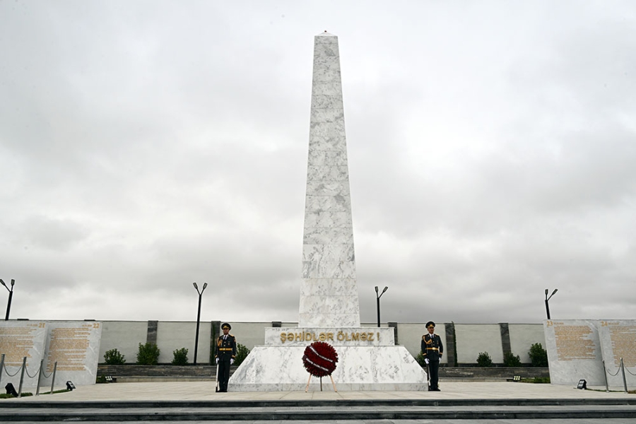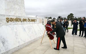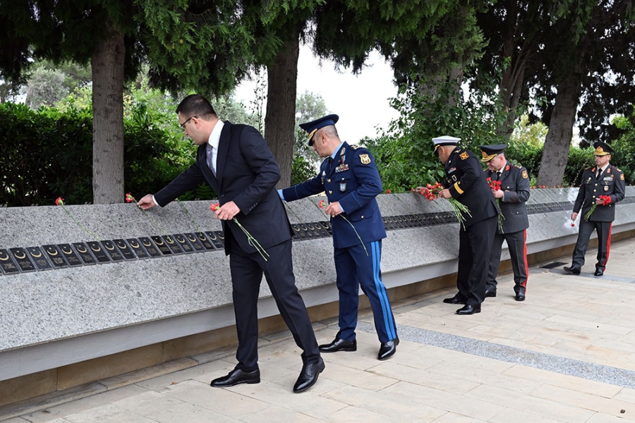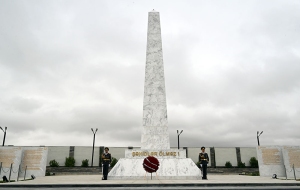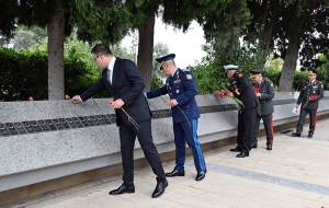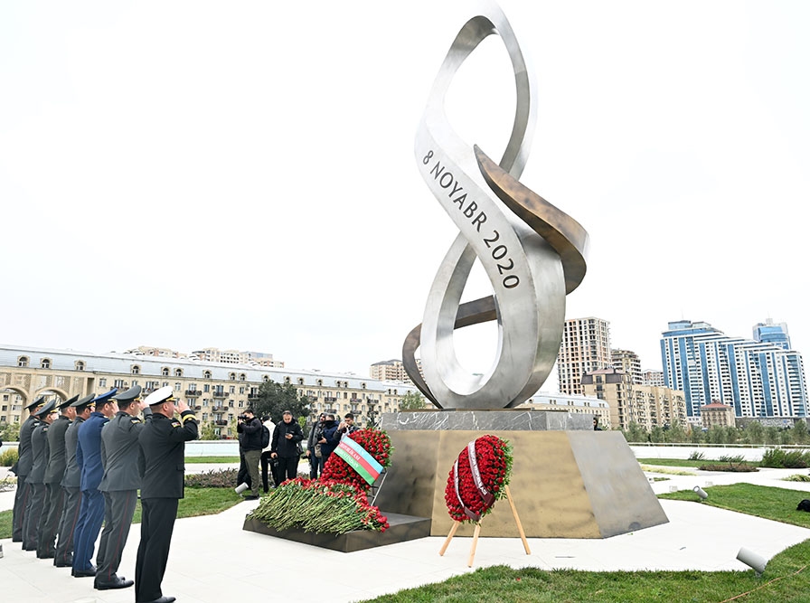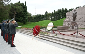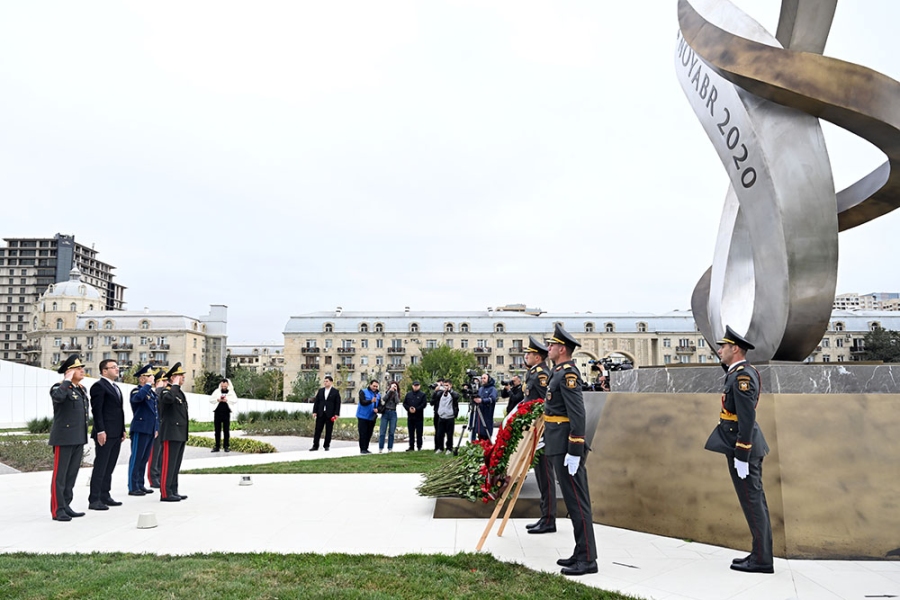 На Военном мемориальном кладбище руководство министерства обороны возложило венок к монументу, символизирующему 44-дневную Отечественную войну. Была почтена память шехидов.
