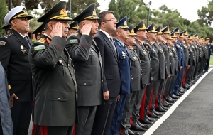 Прибыв в Парк Победы, руководство и личный состав министерства обороны возложили венок к Памятнику Победы.