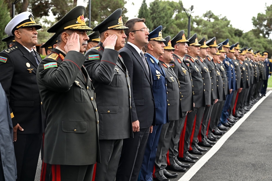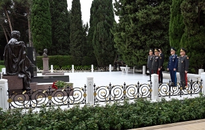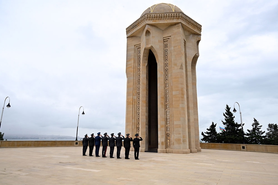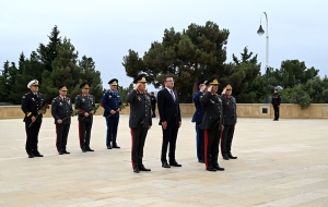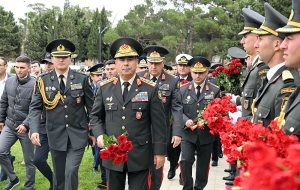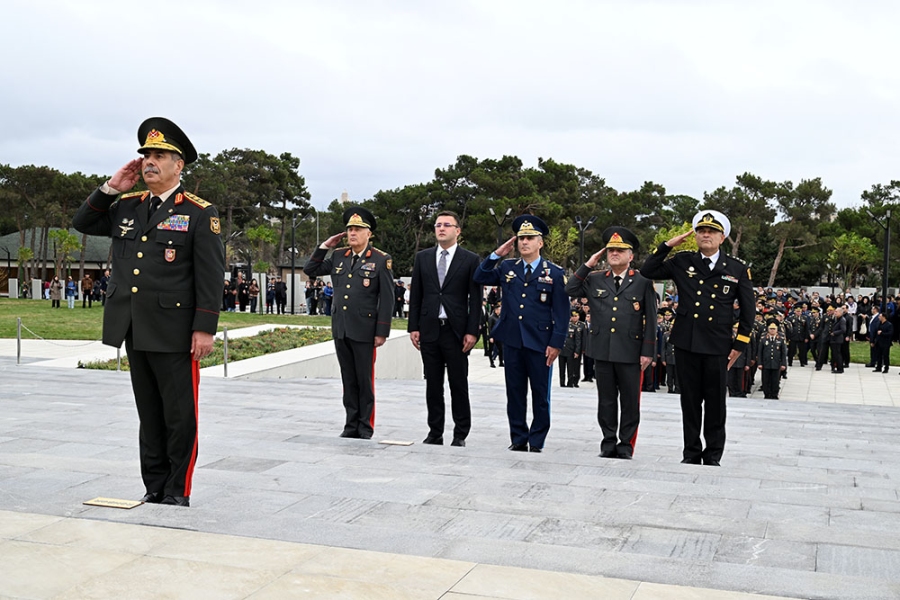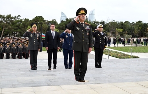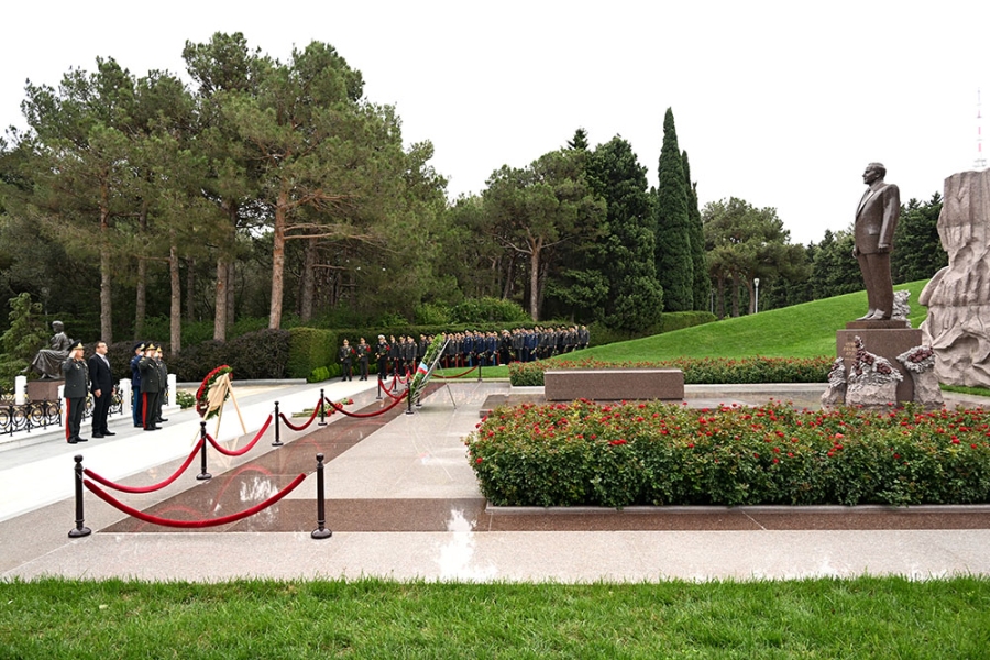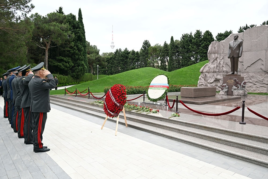 Сначала министр обороны генерал-полковник Закир Гасанов и другие представители руководящего состава министерства возложили венок к памятнику общенациональному лидеру на Аллее почётного захоронения и почтили его светлую память.