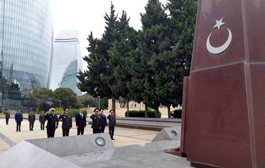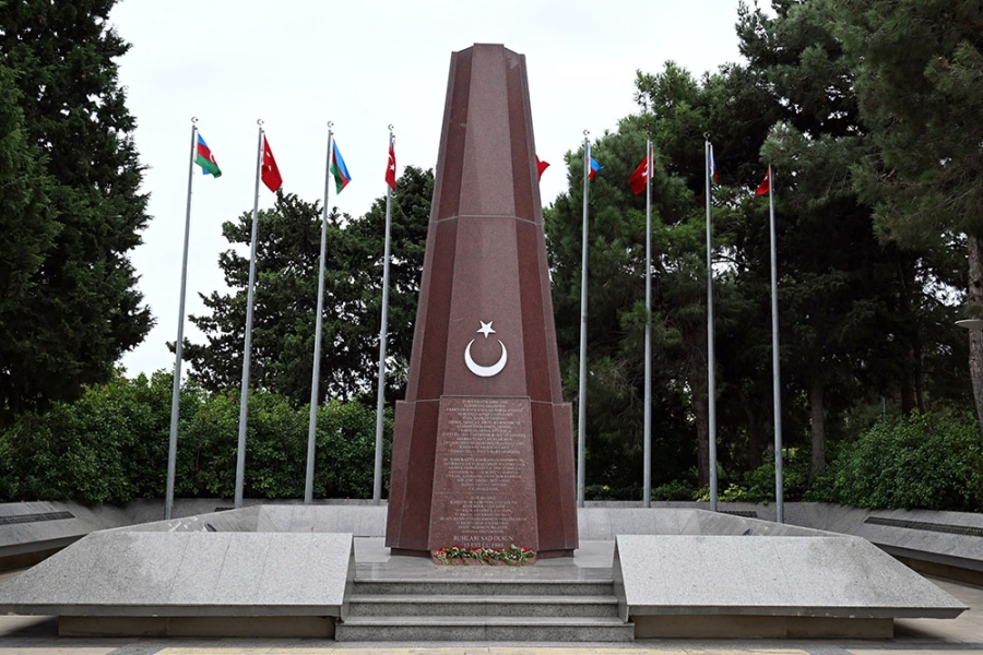 Затем была посещена Аллея шехидов, возложены цветы на могилы шехидов, отдавших жизнь за независимость, территориальную целостность и суверенитет нашей страны, к мемориалу турецким воинам-освободителям и мемориалу «Вечный огонь», почтена память шехидов.