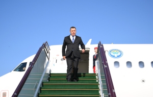 Как сообщает Trend, в Габалинском международном аэропорту в честь высокого гостя был выстроен почетный караул.