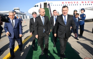 В аэропорту Президента Кыргызстана Садыра Жапарова встречали министр науки и образования Азербайджана Эмин Амруллаев и другие официальные лица.