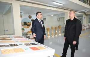 БАКУ/Trend/ - 28 октября Президент Азербайджанской Республики Ильхам Алиев ознакомился с деятельностью семеноводческого предприятия Общества с ограниченной ответственностью (ООО) «Azera Toxumçuluq» в Сабирабадском промышленном квартале, сообщает во вторник Trend.