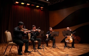 Вечер отличался исключительной музыкальной программой: на сцене прозвучали произведения выдающихся современных и классических композиторов. Публика услышала "Звуки эха" Владимира Рунчака, проникновенный квартет Чары Нурымова "Памяти Индиры Ганди", а также Прелюдии №2 и №7 Гара Гараева в изысканной обработке Лалы Пириевой. Особое внимание слушателей привлекли композиции "Con moto" Бенджамина Юсупова и "Агнец" Джона Тавенера в обработке Аяза Гамбарлы.