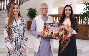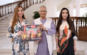 Как сообщает Trend, в рамках визита Лейла Алиева и Арзу Алиева 7 декабря встретились с главным советником временного правительства Бангладеш, всемирно известным экономистом, лауреатом Нобелевской премии мира, профессором Мухаммадом Юнусом.