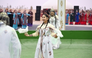 Как сообщает Trend, Национальная группа конных игр «Галкыныш», хранящая древние туркменские традиции конных игр, национальной культуры и фольклора, во время выступления продемонстрировала гостям богатое культурное наследие.