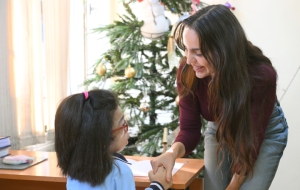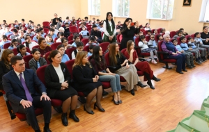 Лейла Алиева, Арзу Алиева и Алена Алиева встретились со школьниками, обучающимися здесь, поздравили их по случаю 31 декабря - Дня солидарности азербайджанцев мира и Нового года, вручили им подарки.