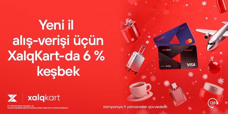 В период кампании клиенты получат 6% кешбэк/петрол по операциям, с XalqKart в кафе и ресторанах, кинотеатрах и при покупке прочих билетов, а также за услуги туризма и отдыха, в кондитерских, парфюмерных и подарочных магазинах. Подробно об условиях кампании: https://www.xalqbank.az/ru/castnim-licam/kampanii/noviy-qod-s-kesbekom-po-xalqkart?include=menu
