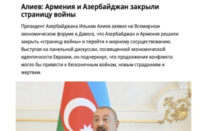 Турецкие информационные агентства Anadolu и İhlas, российские газеты и порталы «Коммерсант», «Комсомольская правда», «Ведомости», «Вести», «Газета», информационное агентство ТАСС, а также арабоязычные порталы Lebanon24 и Al Bayader, ссылаясь на выступление Президента Ильхама Алиева, отметили, что Азербайджан и Армения закрыли главу войны. Глава нашего государства отметил, что для лидера страны, которая на протяжении тридцати лет испытывала страдания, решение остановиться в нужный момент было крайне ответственным и важным шагом. Бесконечные войны привели бы лишь к новым страданиям и жертвам. «Тогда война никогда бы не закончилась. Но кто-то должен был остановить это, и сделать это решили мы. Да, это было совместное решение руководства Армении и Азербайджана закрыть эту главу и посмотреть на возможности для установления мира», - подчеркнул Президент Азербайджана.