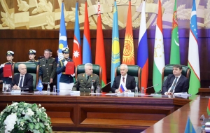 Как сообщает Trend со ссылкой на министерство обороны Азербайджана, сначала министры обороны стран-членов СНГ в сопровождении почетного караула и военного оркестра возложили венки и букеты цветов к Монументу Победы в Москве. Была сделана памятная фотография глав делегаций.