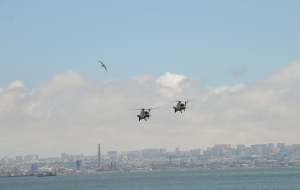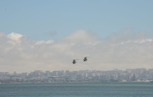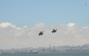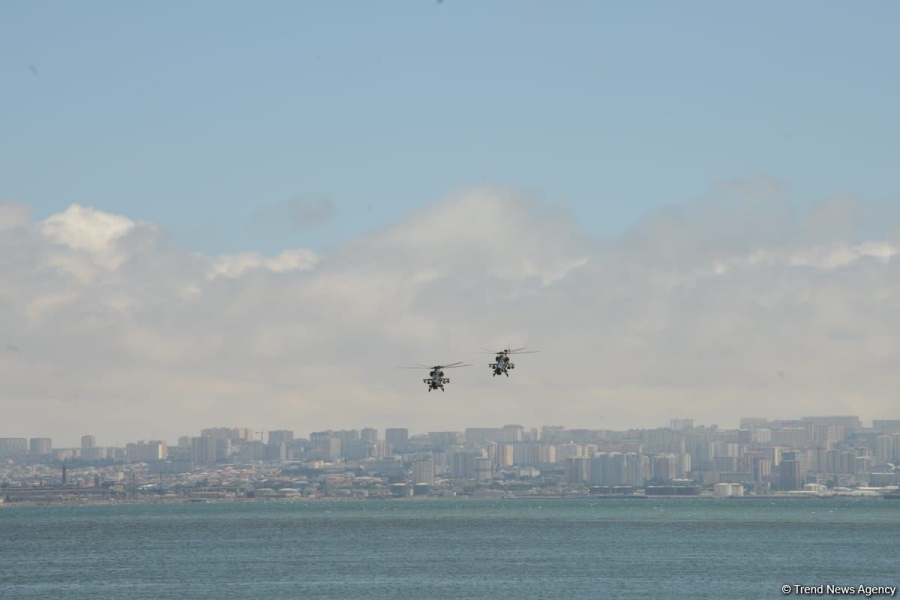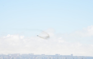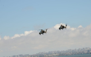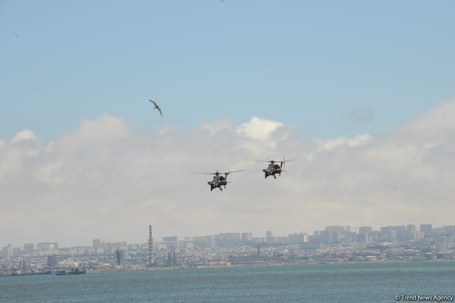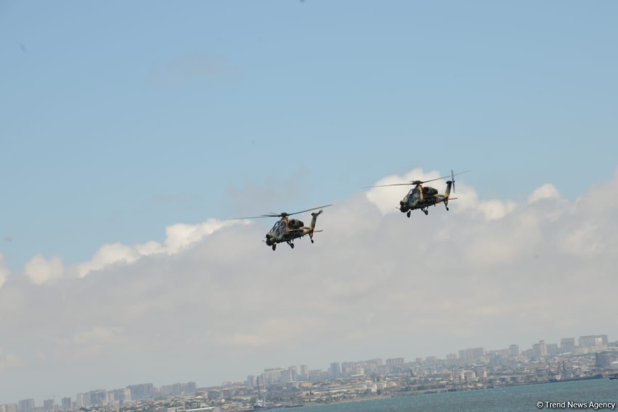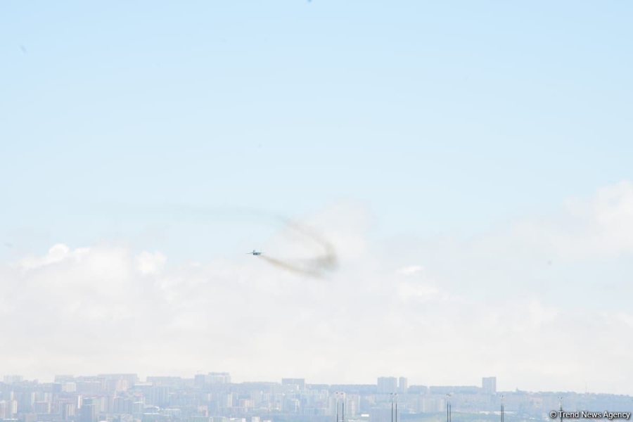 Как сообщает в пятницу Trend, истребители и вертолеты ВВС Азербайджана и Турции выполнили в небе над азербайджанской столицей фигуры высшего пилотажа.