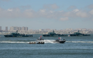 Катера Военно-морских сил Азербайджана продемонстрировали жителям и гостям столицы страны ряд маневров по охране береговых границ, а также ведению боевого дежурства.