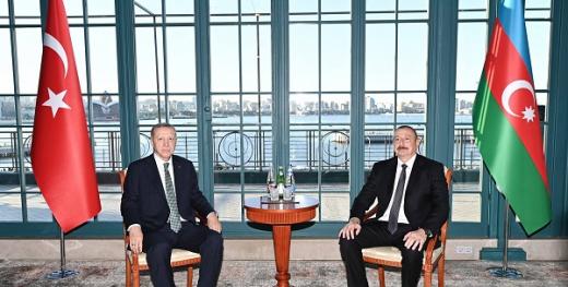 Президенты Азербайджана и Турции Ильхам Алиев и Реджеп Тайип Эрдоган на встрече в субботу выразили уверенность в дальнейшем расширении сотрудничества Баку и Анкары и обсудили перспективы двусторонних отношений. Об этом говорится в сообщении, размещенном на сайте главы азербайджанского государства.