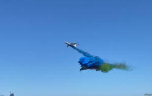 Как сообщает в воскресенье Trend, вертолеты и самолеты ВВС Азербайджана выполнили в небе над азербайджанской столицей фигуры высшего пилотажа.