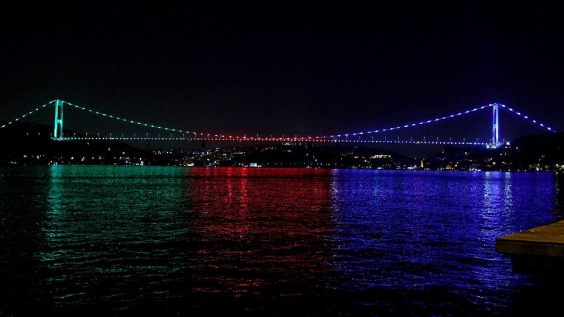 По случаю 28 Мая - Дня Независимости Азербайджанской Республики, мост Фатиха Султана Мехмеда в Стамбуле был подсвечен цветами азербайджанского флага, передают турецкие СМИ.